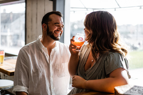 I had SO MUCH FUN at Julie and Ryan's engagement session! We first met at the Ship Bottom Brewery on Long Beach Island, NJ. Getting to start our session in a casual environment really helped us get to know each other and hang out before getting too focused on taking photos (but we captured some really cool moments here anyway!). I always strive to become friends with my wedding couples, so I think having a couple drinks really helped us connect and loosen up before the beach photos.